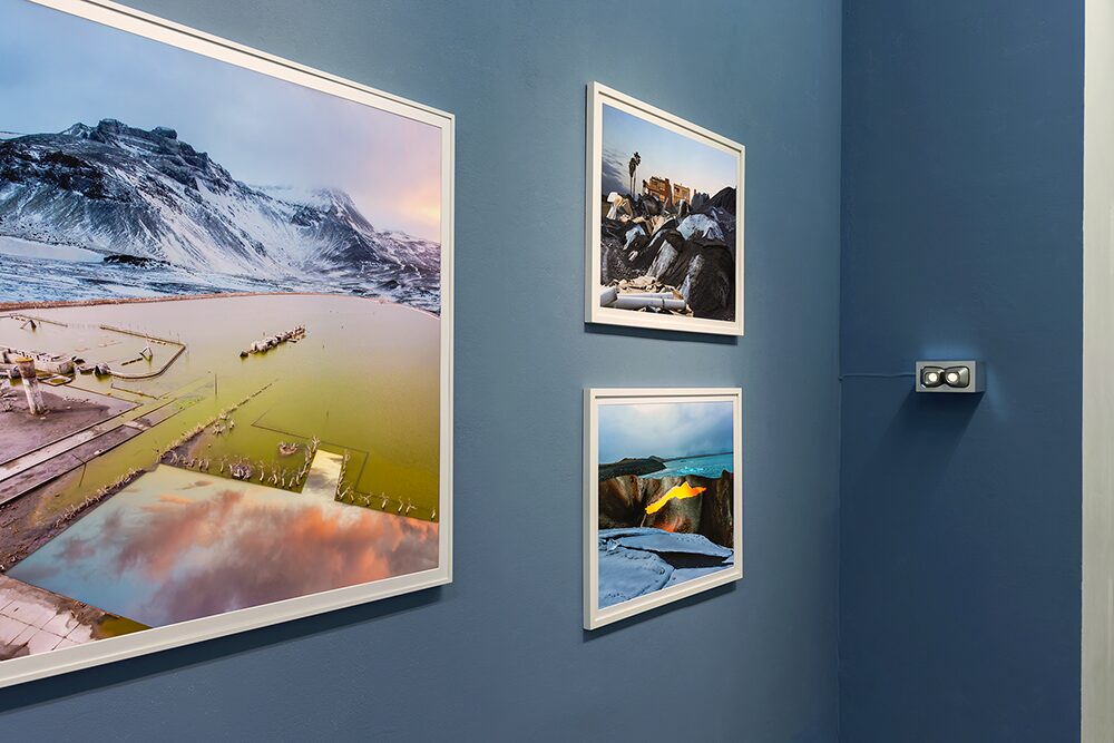 ON TERRAFORMING, 2026: photo collages of the series SHIFTING, stereoscope with a spatial image montage of the series GLOCAL SCENERIES #7